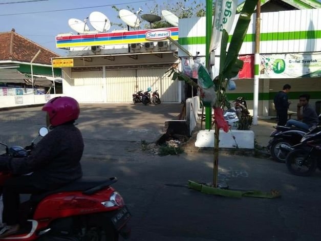 Sebelumnya lokasi tersebut sekitar 1 (satu) bulan lalu sudah ditanami pohon pisang akibat adanya sebuah lubang tepat ditengah jalan, namun hari ini kembali ditanami pohon pisang karena ada lubang lagi tepatnya di bahu jalan sebelah kiri dari arah selatan (di utara pasar lenteng).