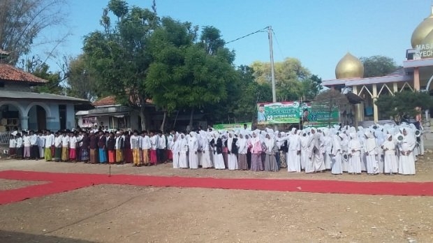 Foto: Ratusan santri pulau gili raja saat mengikuti upacara HSN 2018