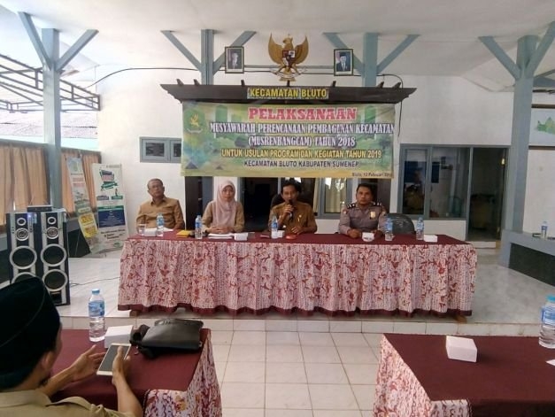 MEMOonline.co.di, Sumenep - Pemerintah Kecamatan Bluto Kabupaten Sumenep, melaksanakan kegiatan Musyawarah Rencana Penbangunan Kecamatan (Musrembangcam) 2018 untuk tahun anggaran 2019. Senin 12 Feb 2018