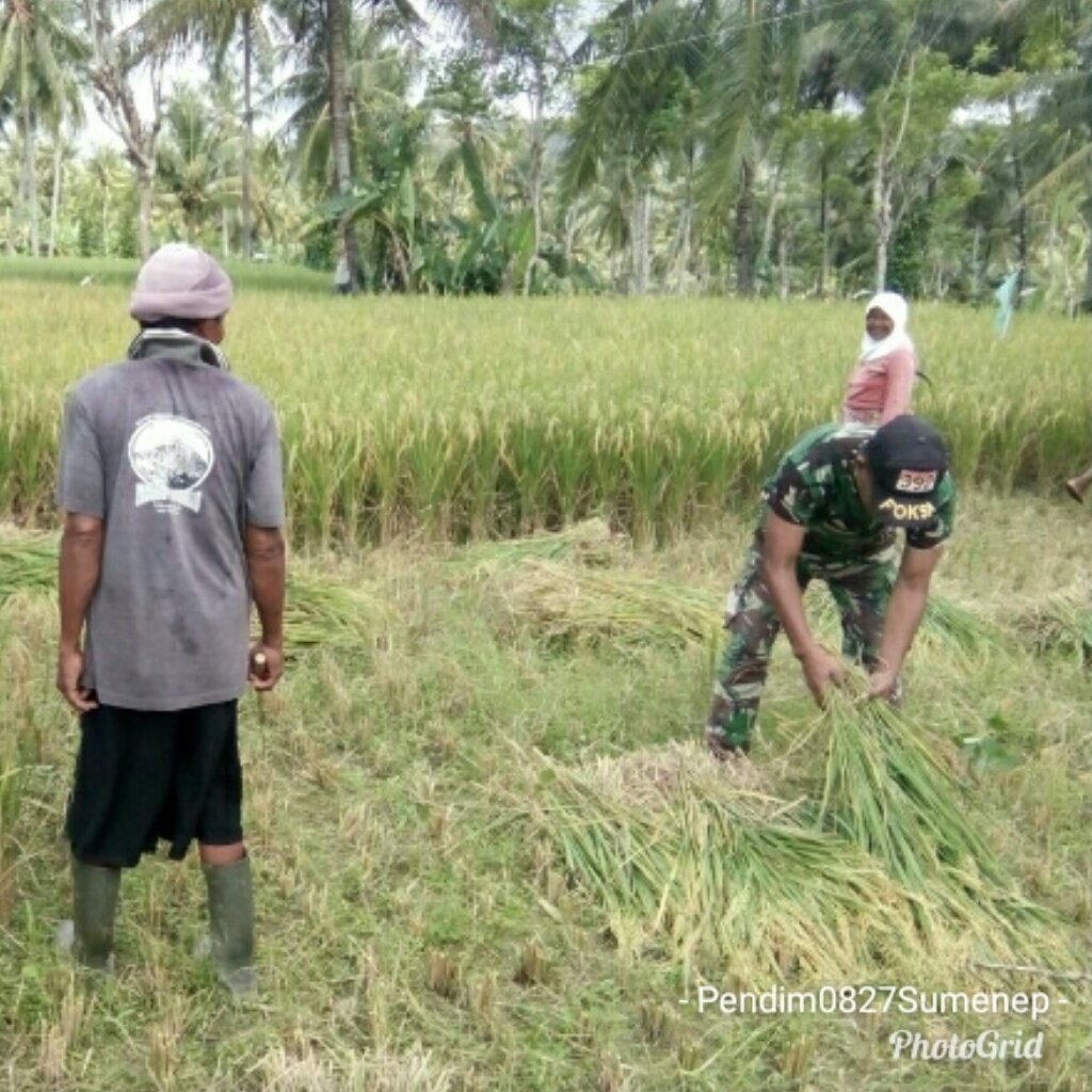 MEMOonline.co.id, Sumenep - Serda Kusaeri Babinsa Koramil 0827/11 Pasongsong melaksanakan pendampingan Panen padi seluas 0.17 Ha dilahan Bapak Hola salah satu anggota Kelompok Tani (Poktan) "Fauna Tani" dengan Hasil ± 3 kwintal di Dusun Rajun Kecamatan Pasongsongan Kabupaten Sumenep. Madura-Jawa Timur. Minggu, (11/3/2018).